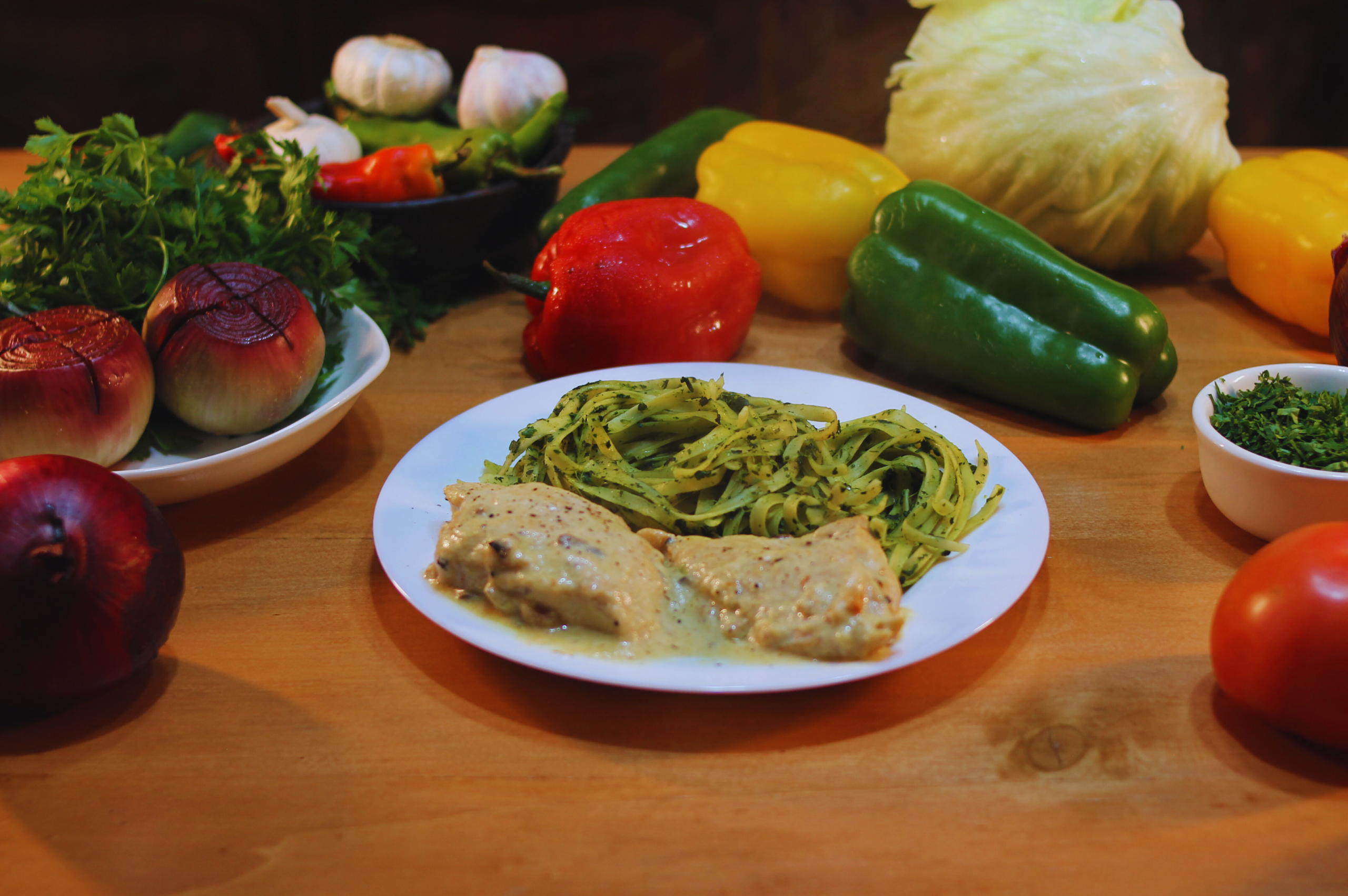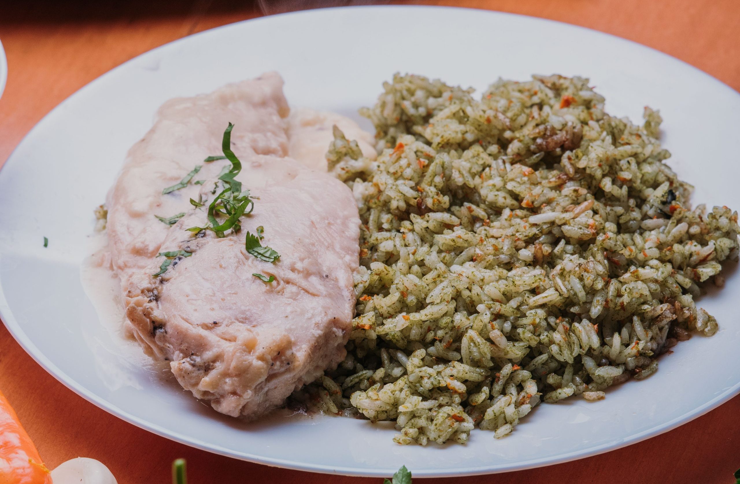 Filetes de pollo dorados suavemente, con la superficie apenas crujiente y el interior jugoso, bañados en una cremosa salsa de champiñones que combina el sabor terroso de los hongos frescos con un fondo de mantequilla, vino blanco y un toque sutil de tomillo.